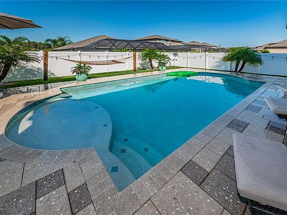 Welcome home to this beautiful 6 bedroom, 4 bath, POOL home in the highly sought after, gated community of Trinity Preserve! Built in 2015, this home shows like NEW! Walk through the front door to a grand, two story foyer, and a formal living room. Downstairs offers an open floor plan with a formal dining room, breakfast nook, and spacious living room! The gourmet kitchen is a chef's dream, with espresso cabinets, granite counter-tops, and all stainless steel appliances! With over 3,200 sq. feet of living space, this home features numerous upgrades including: crown molding throughout, fresh interior/exterior paint, new (2018) carpet and wood-look laminate flooring on the second level. Upstairs you'll find an enormous Master Suite with a separate sitting area, a Master Bath with a walk-in shower, large soaking tub, and walk-in closet. Backyard is a tropical oasis with a heated, saltwater pool and tropical landscaping! NO CDD's, Low HOA! Convenient location to top-rated schools, shopping, restaurants, and more! Contact Meredith Lynn, RE/MAX Champions at 727-946-4483 for more info.