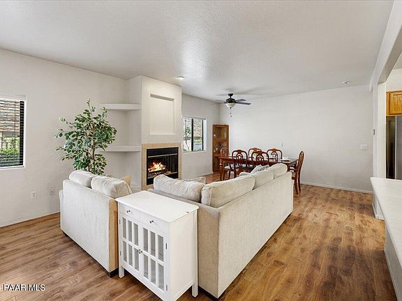 Located in the gated Boulders Park Townhomes, this ideal end-unit townhome offers a virtually maintenance-free lifestyle, perfect for those seeking a lock-and-leave option or full-time living with the added security of a gated and fenced neighborhood. As you enter, you'll be greeted by an open and inviting great room, featuring a spacious living/dining area with soaring ceilings, a cozy gas fireplace, and stunning views of dramatic boulder outcroppings and towering pines. The kitchen is designed for both functionality and style, offering upgraded appliances, a walk-in pantry, ample counter space, and a convenient breakfast bar for casual dining. Upstairs, you'll find all the bedrooms, including a generously sized master suite with dual walk-in closets and a well-appointed ensuite bathroom