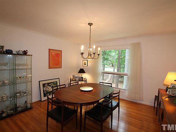 Wonderful 3BR/2.5BA Mid-Century Modern home that has been meticulously maintained, on a beautifully landscaped/wooded .64 ac lot with easy access to Chapel Hill, Durham, and RTP located near Southpoint Mall. The house has hardwood floors, updated baths, a huge family room with masonry Fireplace w/gas logs, and an over sized 2 car garage w/work and storage areas. Spectacular deck off the kitchen area that is perfect for enjoying your morning coffee. Enjoy the 7.5 ac neighborhood park w/pond.