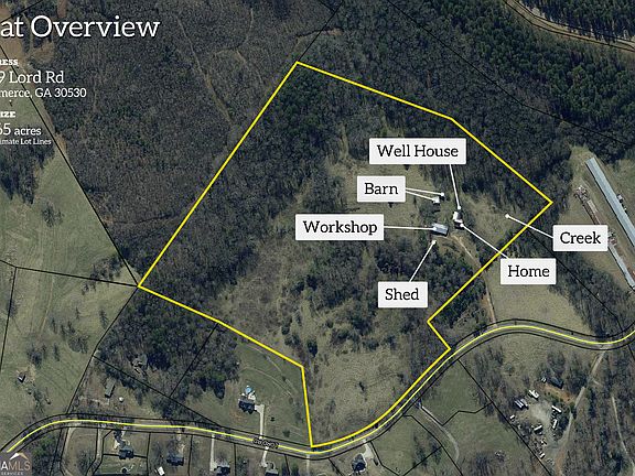 Bring your vision and make this remarkable property your own! Situated on 41.65 acres just outside Commerce, this farm features a 2,323 sq ft home ready for renovation, a 52x32 shop building, 30x60 barn, 6x20 shed, and an additional storage structure. The land is a beautiful mix of open pasture, hardwoods, and mature Poplar, Black Walnut, Pecan, and Oak trees. You'll also find muscadines, a large scuppernong vineyard, and a peaceful creek that winds through the property. Granite-top picnic tables make the perfect spot for outdoor gatherings and cookouts. With established infrastructure, natural beauty, and usable acreage, this property offers endless opportunities for farming, livestock, or creating your dream homestead-all just minutes from I-85 and downtown Commerce.