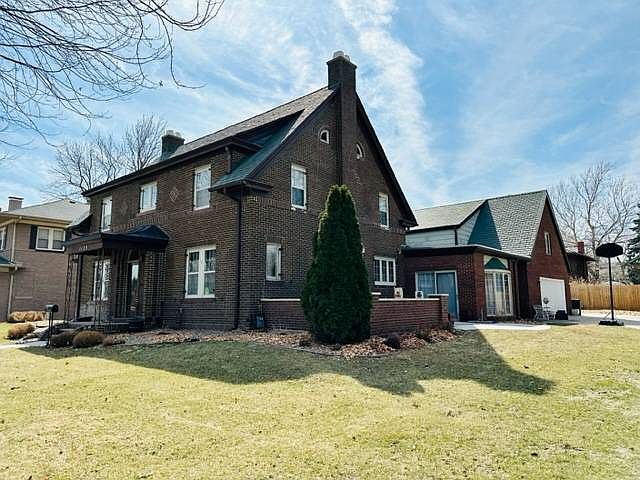 2 story, 4 bedroom, 3 and 1/2 bath home with large addition. Main floor has kitchen with pantry, formal dining room, living room with fire place and sun room with fire place, great room with family room, dining area and 1/2 bath. 9 foot ceilings. 2 stair cases to second floor. 3 beautiful concrete patio out door spaces, an out door fire place, privacy fence and under ground sprinklers. Stair case to attic for additional storage. Work room in garage has heat and a sink. Mud room at garage entrance. Pennsylvania Slate shingles, brick exterior on original house with siding on back of addition. Copper roof on the front entrance and sun room. Pretty balcony off master bedroom.