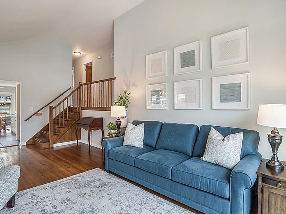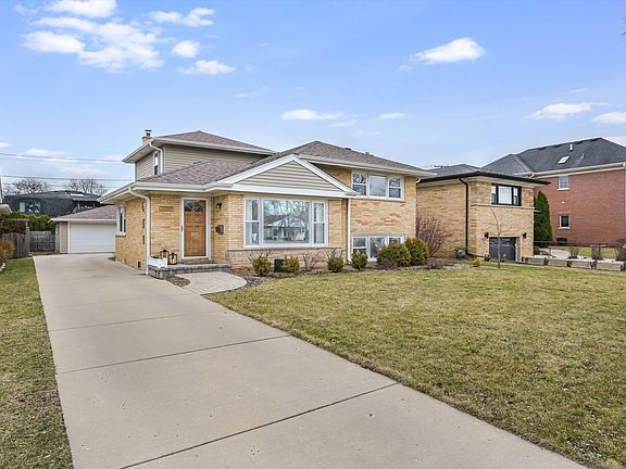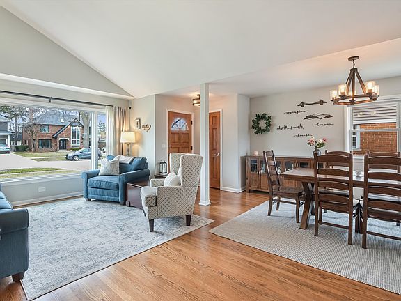 Welcome to this beautifully updated split-level home offering over four levels of living space in a prime location just one block from Woodland Park. Thoughtfully renovated and meticulously maintained, this home is truly move-in ready, blending timeless charm with modern updates for the perfect balance of style and comfort. Throughout the main level, you'll find gorgeous hardwood floors, high-vaulted ceilings, and an open-concept living and dining area that offers an airy and expansive feel. Step into the eat-in kitchen featuring custom-built shaker-style, softclose cabinetry, premium quartz countertops, a sleek subway tile backsplash, and stainless-steel appliances. The spacious layout makes this kitchen both functional and inviting, with sliding doors opening directly to a recently laid patio perfect for outdoor dining and entertaining. Upstairs, you will find four generously sized bedrooms, including a master with custom closet organizer, and a full bath. Downstairs, the fully finished basement is a true extension of the home, boasting carpet flooring, a gas fireplace, a remodeled full bath, and a laundry room with a backyard walkout - making it perfect for additional living, entertaining, or a private retreat. The concrete driveway leads to an oversized 2.5-car garage with ample shelving and an attached shed, providing generous space for vehicles and extra storage. The home also features many updates made by the owners such as new window treatments, landscaping, air conditioner, roof, gutters, and so much more - full list in additional documents. In 2023, Woodland Park construction was completed, adding a variety of amenities including pickleball courts, a pavilion, cornhole boxes, a table tennis table, and outdoor restrooms. With its prime location, thoughtful upgrades, and exceptional living space, this home is an absolute must-see.