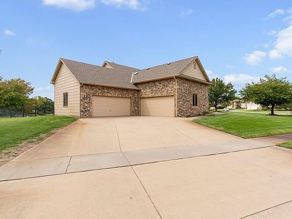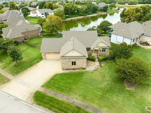Welcome to your lakeside oasis with NO SPECIALS! This stunning 4-bedroom, 3-bathroom home is a waterfront paradise that offers the perfect blend of luxury and tranquility. As you step inside, you'll be greeted by a spacious floor plan, bathed in natural light. The living room features large windows that frame the breathtaking lake views, creating a serene and inviting atmosphere. The kitchen and breakfast nook are a dream come true, boasting granite countertops, high-end appliances, and a generous eating bar – perfect for entertaining or family gatherings. Step out onto the deck, where you can sip your morning coffee while watching the sunrise over the lake. Evenings can be spent here, enjoying stunning sunsets or hosting BBQs with friends and family. The primary bedroom suite is a true retreat with two walk-in closets, two vanities, a jacuzzi tub, and separate shower. Three additional bedrooms offer ample space for a growing family or guests, each with its unique charm and lake views. This home also features a formal dining area to host all the holiday events for family and friends. The cozy basement is large and spacious for movie nights or gatherings. With walk out lake access, you can enjoy activities like paddle boating, fishing, or simply relaxing by the water's edge. The beautifully landscaped yard provides a serene backdrop for outdoor enjoyment. Conveniently located near top-rated schools, shopping, dining, Sedgwick County Park and highways - with quick access to airport. This property offers the perfect blend of privacy and accessibility. Don't miss the opportunity to make this lakeside retreat your forever home. Schedule your showing today and start living the waterfront lifestyle you've always dreamed of!
