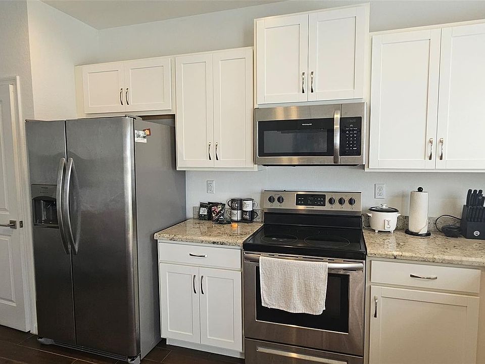 Gated communityCovered garageQuartz countertopOpen layoutWasher and dryerModern wood kitchen cabinetsNew furniture