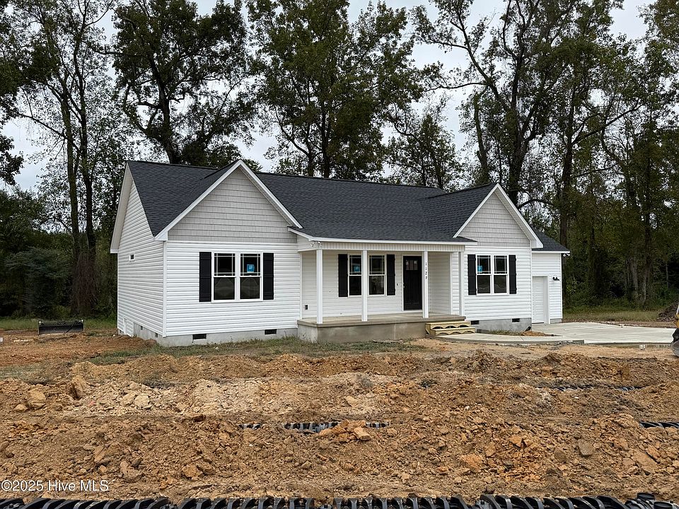 New Construction with NO HOA on 2 acres! This charming home offers a peaceful retreat while still being conveniently located. This home boasts a contemporary layout with 3 bedrooms and 2 baths, providing ample space. The heart of the home lies in the spacious kitchen and dining area with island. The kitchen is equipped with modern appliances, sleek countertops, and plenty of storage space. Owners suite, featuring a generous walk-in closet that caters to all your storage needs along with the ensuite bath. Don't miss the opportunity to make this new construction ranch home your own.