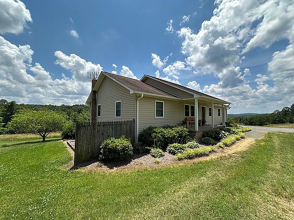 Custom-built home in 2009 on 8.15 acres (4.5 hayfields, 3.15 wooded, .5 garden) in Stokes County North Carolina, 15 minutes north of King NC, 25 minutes north of Winston Salem NC, and 30 minutes south of Mount Airy NC. It is located on a quiet road that is a cul de sac. Views of Sauratown Mountains, Moore Knob (Hanging Rock), with apple and pear trees, landscaped front yard, and a beautiful new retaining wall and fencing. The front porch has a stamped concrete, German slate-style floor. This ranch-style home is 1800 square feet finished upstairs with 3 bedrooms and 2 bathrooms and 1800 square feet down-stairs that is a walk-out basement (8-foot ceiling) that includes a shop (20ftX30Ft) that has a steel entry door and French doors on the semi-finished side (30ftX40Ft) that is plumbed for a bathroom and has HVAC. Ready for additional living space. This additional 1800 sq ft could be easily completed as a mother-in-law suite, additional living/bedrooms, bath for twice the living space (3,600 sq ft), or used as an Airbnb. Outside the French doors is a 48X12 concrete patio perfect for grilling. An open floor plan with vaulted ceilings in the living room, dining room, kitchen, and master bedroom. The kitchen includes a Jennair downdraft cooktop, a Jennair side-by-side refrigerator, a Maytag dishwasher, red oak cabinets, and an eat-in bar. There is a 6X6 walk-in pantry with three walls of shelving and a mudroom/laundry room with a GE front-load washer/dryer. The master bedroom is 17X17 with a large walk-in closet (10X8) and the bathroom includes a Jacuzzi whirlpool bathtub. The guest bedrooms are on the other side of the house with a guest bathroom and are 14X12 and 12X12. Off the dining room is a beautiful covered deck 12X24 with powdered coated hog wire handrails. The home is built with an engineered trussed roof, architectural shingles, dutch-lap siding with added 1/4" insulation foam board, Pella windows (interior mini blinds in the sliding glass door off the dining room) and interior doors are special-ordered "Santa Fe" style which includes the closet doors. The interior walls have sound batting. Engineered floor system with 3/4" tongue and grooved red oak throughout the entire house, bathrooms are ceramic tile. The exterior walls are 2X6 (better than standard 2X4), R22 rating ( better than standard R15), a 3-ton HVAC, and the basement walls are 12" thick rebar/poured solid. This house is energy efficient. Ask to see the electric bills. In addition to this beautiful home, property, and views, there is a restored 1906 tobacco barn with electricity and water, a three-sided wrap-around roof, and a chicken coop. For Sale by Owner. Ready for a new family. To make an appointment to see this property call 336-972-2817.