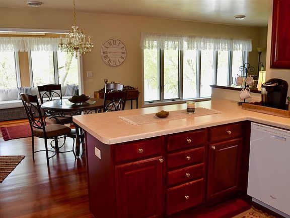Enjoy the serenity and awesome views in this condo on the Wolf River. Open concept kitchen with cherry flooring, maple cabinets and gas fireplace with marble surround. Spacious master suite with walk-in closet and private bath. A 4-seasons room overlooking the river with a 2 car heated garage and common water frontage make this condo a must see.