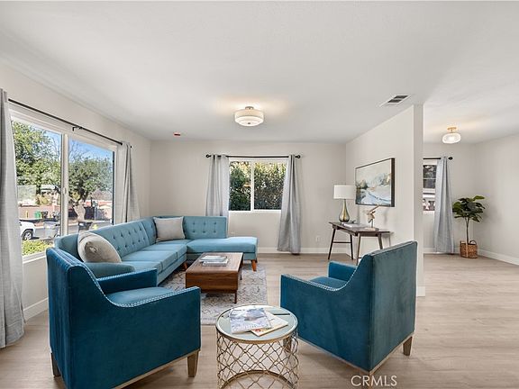 Welcome to one of Corona's most beautifully updated homes located on 1129 S Merrill Street. Located on a quaint street across from a small, charming park sits this freshly remodeled 3-bedroom, 2-bathroom home that is waiting for its future owners. As you walk into this home, step onto the brand-new luxury vinyl plank flooring and take in the amazing open-concept floorplan. This layout is perfect for family gatherings, holiday parties, and even families that need that extra space for the kiddos to run around. As we walk further into the home you will notice a family room area near the kitchen that is perfect for some office space or a second common area. In other words, plenty of space for all that new furniture we know you will be buying to fill in this awesome home! As we make our way in the kitchen, take a close look at the attention to detail. From the brand new white-shaker cabinets and drawers to the brush nickel handles, to the soft-closes feature, this kitchen was built to the nines. The countertops are a luxurious quartz, and the backsplash is a simple white tile that makes the kitchen feel very clean and elegant. All the appliances are brand-new stainless steel, and yes, they do indeed come with the home. As we head over to the master suite, this is a one-of-a-kind type of suite! This bedroom has dual closets, one normal sized closet and one walk-in. The bathroom is a great size as well with brand new tile flooring, a brand-new vanity and sink, and the shower has been completely remodeled as well. The remaining 2 bedrooms are also an excellent size as well have all been updated from the doors, painting of walls, and light fixtures. The guest bathroom has also been updated with new tile flooring, a brand-new vanity and sink, and the shower/tub being completely remodeled and updated. As we wrap up the final details this home has a walkable basement for any extra needed storage, the HVAC system was updated by the previous owners just a few years ago, and every outlet of the home has been replaced and GFCI's have been put where needed. The backyard is insanely large and with alley-way access there is potential to build an additional garage or ADU, like many of the neighbors had. Last but not least this home HAS A BRAND-NEW ROOF, so when we say there has been no stone left untouched, we truly mean it! So don't hesitate, come on down, and take a look at what could very well be your future home over on 1129 S Merrill Street!