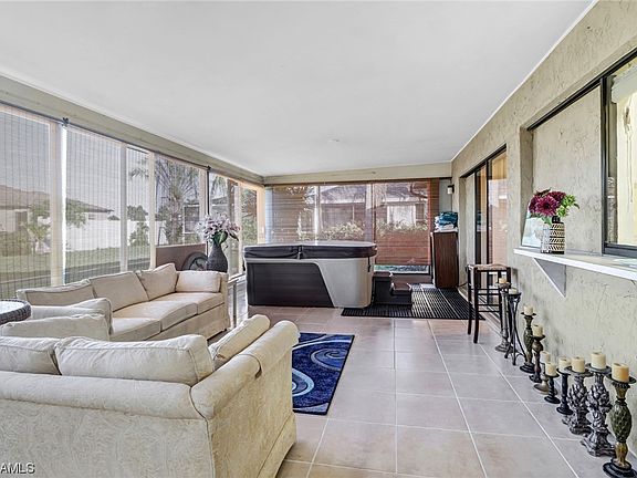 NOT A FLOOD ZONE!! Great established neighborhood, 2 blocks off of Del Prado. ALL Assessments in and PAID! Large 2/2/2 with 1,658 sq ft under air. Home boasts high ceilings in Family room and Large 26' by 14' Florida room with new hot tub for entertaining. This is a Split floor plan, meaning bedrooms are on opposite sides of the house for privacy. Large kitchen has plenty of cabinets for storage. Inside laundry has newer washer and dryer. Outside you have partially fenced yard with mature landscaping, sprinklers, and room for a pool. Close to Downtown Cape Coral, The Cape Coral Yacht Club, shopping, restaurants, and easy access to Fort Myers. Roof replaced in 2016, A/C 2016. Home is all Tile & Premium Laminate Flooring, no carpet.