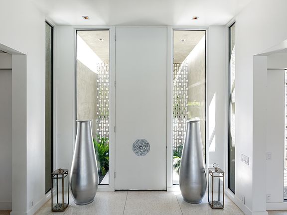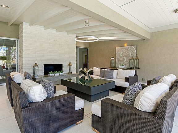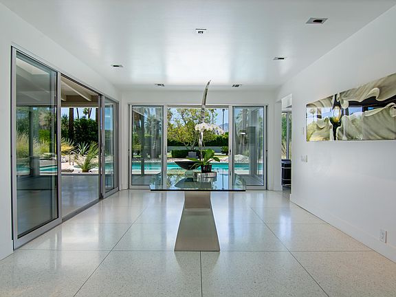 An exquisite mid-century modern home sits on a street to street acre of land in the heart of Central Palm Springs. The property was extensively refurbished in the year 2000 by well known local architect James Cioffi and has had many upgrades during the current ownership. Walled and gated, this estate offers total privacy with outdoor amenities that include a private tennis court, sparkling pool and spa, architecturally distinctive outdoor kitchen with indoor pool storage with refrigerator, wine bar and pool bath and a covered outdoor family room with fireplace. The indoor amenities include vast expanses of terrazzo flooring, a separate media room with large viewing screen, five bedroom suites, formal living room and dining room, art gallery entry and a state of the art chefs kitchen with eating bar and breakfast area.