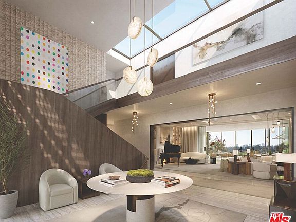 A rare architectural estate in the heart of prime Beverly Hills, offering panoramic city-to-ocean views and timeless luxury. Currently in the final stages of construction, this estate presents a rare opportunity to personalize finishes and complete a legacy home in one of Los Angeles' most coveted locations. Designed by world-renowned architect Richard Landry, this 15,000 sq ft Neoclassical Contemporary sits privately on 1.35 acres behind gates, approached by a long private driveway and motor court. The striking exterior features walls of glass and custom Italian split-faced travertine, setting the tone for sophisticated, modern design. Inside, a dramatic two-story foyer opens to expansive living spaces, including a grand great room, media room, office, chef's and prep kitchens, and a seamless indoor-outdoor flow to the covered loggia, bar/lounge, and spectacular infinity pool. Upstairs are four ensuite bedrooms including a stunning primary suite with dual baths, oversized closets, sitting room, and private terrace. Additional highlights include a gym, spa with sauna and steam, elevator, 8-car garage, guest house with 3-car garage, sport court, and full staff quarters.