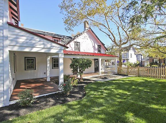 Completely remodeled "from the studs out" and expanded to a luxury level! The Historic John Hand House is one of the first homes built in Cape May with tax records dating back to 1710. Nestled on tree-lined Washington Street, this 5 BR/3.5 BA offers original character throughout. Home is fully furnished with window treatments and flat screen televisions. Level one offers a kitchen with GE appliances, living room with gas fireplace with original brick surround, master suite with private bathroom and walk-in closet, powder room and laundry room. Level two offers a suite with private bathroom and walk-in closet, hallway bathroom, and three additional bedrooms, including one with a loft. Exterior amenities include abundant off-street parking, spacious yard with landscaping and sprinkler system, detached garage, covered front porch with IPE decking, metal and asphalt roofing systems, wood siding and outdoor shower. Interior features include multi-zone climate control, Anderson Windows, tile flooring, recessed lighting and unique wood trim.