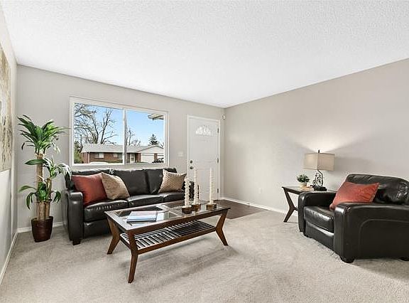 Wonderful ranch-style half-duplex home with two beds, one bath, one-car attached garage and no HOA dues! Open floor plan and abundant natural light. With new paint, new carpet, new roof, updated kitchen and bathroom, and central A/C, this home is move-in ready! So many possibilities with the fenced yard area, covered patio, and two utility sheds. You can entertain outdoors or plan a summer garden! Easy commute to downtown Denver, and close to the future RTD G-line station at Ward Road and 50th.