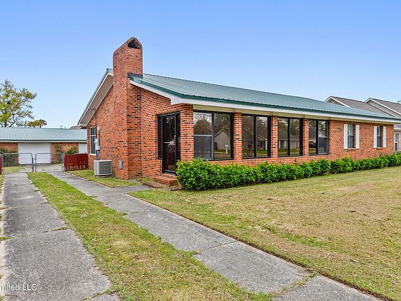 Charming 3BD/2BA home nestled in Woolmarket with approximately 1,977 sq ft of living space. Living room features a wood-burning fireplace. No carpet. Spacious enclosed front patio and screened-in back porch, great for relaxation or entertaining. Metal roof, detached two-car garage, and large yard. Located in the Harrison County School District and not in a flood zone. Walking distance to basketball and pickleball courts, walking track, and childrens' park. While cosmetic updates are needed, it presents a space for your personal touches to transform it into your dream home in the Eagle Point community.