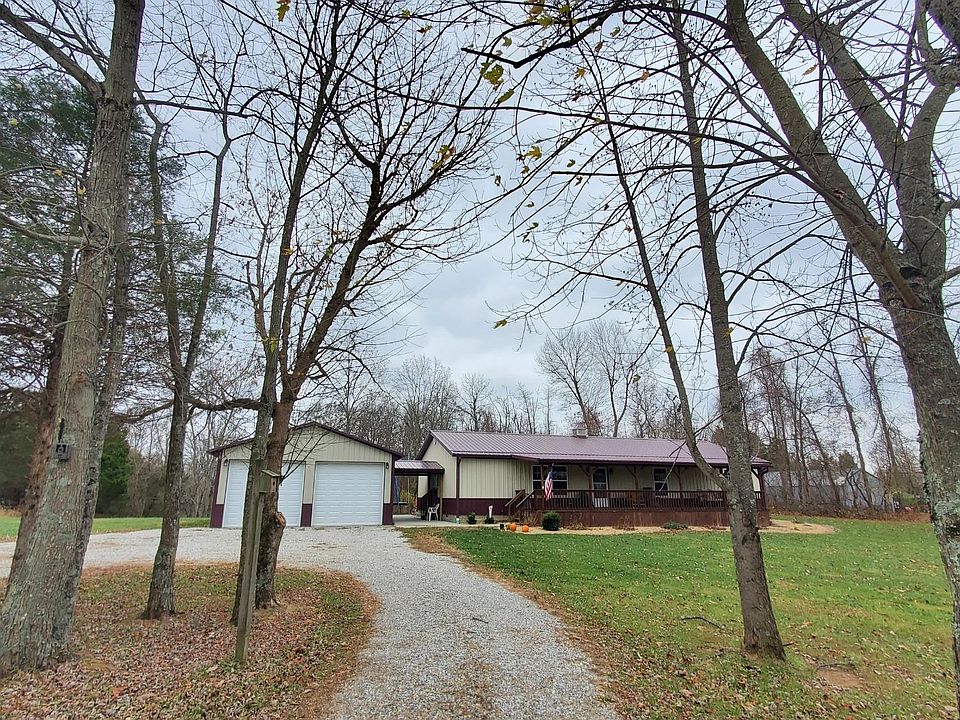 This one story, 3 bedroom/2 bath stick built home with metal siding and roof sits back off of the road on 8.8 mostly wooded acres! The interior offers a spacious open living concept, free standing gas fireplace in the living room, and a master bedroom with walkin closet and master bath. The home offers a front and rear covered deck to sit back and relax on. There is a 2-car garage that is attached to the house via a breezeway...no more carrying groceries in the rain! The yard is nice and level, great for swingsets and horseshoes. And there is a garden area too! Need room for hobbies or big toys? There is a 36x50 mostly insulated pole building with 200 amp service, 2-12' overhead doors and 1-10' overhead door, water, electric AND a kitchen, bath and 2nd floor living area/bedroom/apt!! But wait, there's more....for those friends/family that have campers, there are 3 camper hookups, all with water, electric and sewer!! WOW! Want to learn more or see in person? Call today!