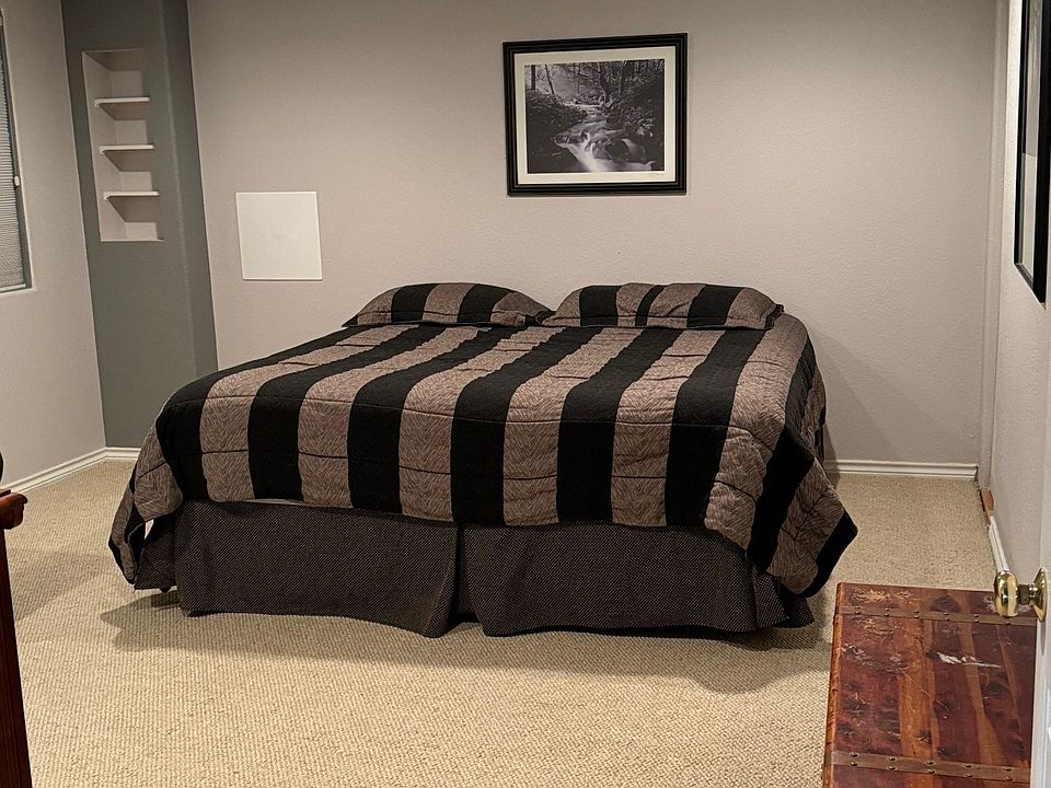 Welcome to your dream home! This spacious private entrance house for rent features stunning amenities, mountain views, and easy access to attractions. Nestled in the serene neighborhood of Panorama Ridge in Littleton, CO, it provides a tranquil escape from the hustle and bustle of city living. Moreover, it is only a short drive to hospitals and the mountains for winter skiing or summer hiking. Step into the house and be greeted by slate flooring in the bar/kitchenette and wine area and carpeting throughout the main area/bedroom and workout room area. The bedroom features a king-sized bed, a walking cedar closet, a dresser, and a poster chair for added comfort. Cut-out shelves provide space for your personal belongings and decorative items. The bathroom features a single vanity and a tub shower combination, perfect for relaxing after a long day. The bar area boasts a kitchenette, a microwave, toaster oven, air fryer, kuerig or reg coffee maker and even a medium-sized refrigerator. It is set up in a bar, making it the perfect spot to prepare simple meals and entertain guests. Includes access to main level with a 5 gas burner stove and convection and regular oven. Plenty of items to cook with as crock pots, insta pots , chef knives, pots and pans and spices are available to use from the main level kitchen. There is no disposal, the sink is small, but there are plenty of dishes provided, and use of the dishwasher in the main level is always available. Step outside and discover the walk-out basement to the backyard, which features a BBQ area and a separate area with a table and chairs, hammock and sitting for open-space dining. Full use of a new upper deck with table and chairs for 6/rocking chairs/fire pit with chairs. The house also has a pool table, a wine area, and an exercise room with workout equipment, including a treadmill, Weider, and Bowflex machine, a stationary bike, some free weights, and a craps/blackjack table. The main area has a Large Desk for remote work or surfing the net. Enjoy a drink at the full bar area or cozy up and watch a movie in the fully furnished insulated movie room, complete with a TV and leather sectional sleeper. The house has a laundry, stackable washer, and dryer for convenience. Main area has a TV to hook your computer up to for streaming. The unit has AC and Heat, the thermostat is on the main level, but you will be able to adjust it according to your liking. An outside seating area with a grill is available for those who enjoy fresh air and outdoor activities. Additionally, the pool table area, exercise room, and wine nook are other bonuses that provide plenty of entertainment for your leisure time. This lower-level home has a separate entrance and the convenience of an alarm system with its own personal key code lock for added privacy and security. There is a slight slope on the concrete walkway to access the property, the property is not handicapped accessible including people with moderate walking issues due to the slope. Don't miss out on this opportunity to rent an incredible private entrance house in a serene and desirable neighborhood. With so many amenities and attractions within reach, your lifestyle will be elevated in every way. Schedule a viewing today and embark on a new chapter of comfortable and luxurious living! Owner pays all Utilities, except personal streaming services. 3 month minimum. The longer the lease term - the more room I have to discount the rent. Fully Furnished. Includes all linens/towels, kitchen dishes/utensils, and starter supplies ie soap, dishsoap, laundry soap, cleaning products. Background check will be done. Low deposit $500 and pet deposit additional $75. Renter's insurance is not required due to the unit being completely furnished, but strongly recommended if you bring personal items into the rental.
