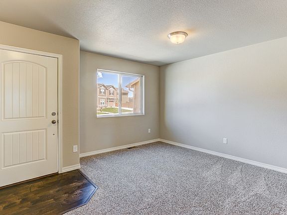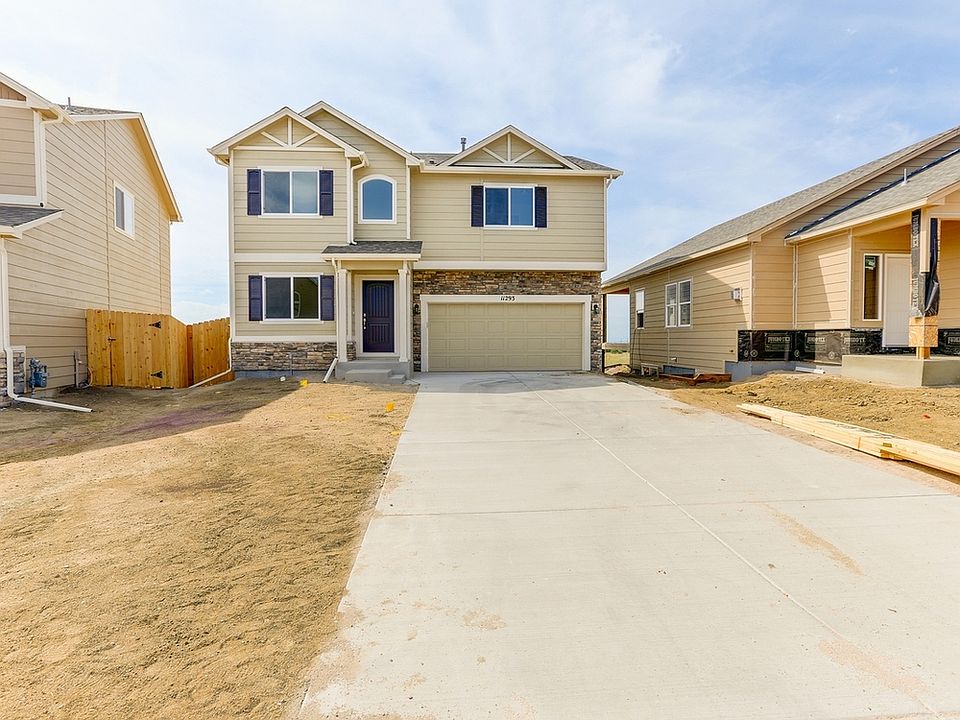 This 2199 finished sq.ft. Challenger Homes Van Buren plan has an unfinished, garden-level basement with an additional 924 sq. ft. of unfinished space. The home backs to privately owned property with spectacular, unobstructed views to the south and west of the Peak. Full yard landscaping is included (front/back sod with automatic sprinklers, drip systems to shrubs in front yard, 6' privacy fencing). 3 bedroom, 2.5 bath, loft, flex space, designer kitchen with granite, island, gas line and stainless appliances, and a large 5-piece master bath. All rooms include walk closets. MOVE IN READY! Ask about close out incentives!