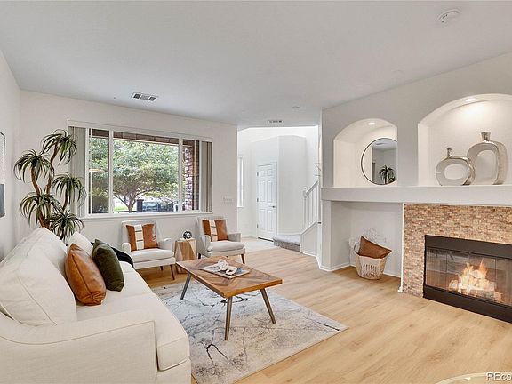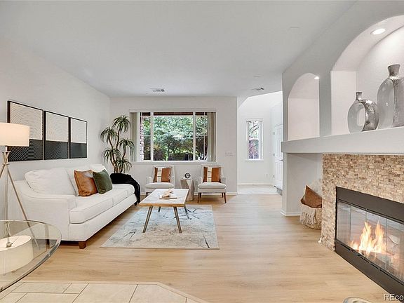 You're going to fall in love with this home! This 2 level townhome has modern functionality and so much style. This beautifully updated 3BR is located along a secluded greenbelt with mature foliage and mature trees, offering beautiful summer scenery out the large windows. The covered entryway is set up perfectly to sit outside or grill and chill. The entryway is dramatic, ceilings soaring over 19 feet tall, chandelier, architectural accents and windows high above are sure to impress. The main living highlights includes new luxury vinyl plank flooring, gas fireplace, artistic built in accents, tall ceilings, and more. Tiled entryway repeats in the owners entryway, kitchen and dining areas. The kitchen has gorgeous granite countertops, new stainless steel single basin sink and faucet, Whirlpool stainless steel appliance package, bar height countertop seating, and full pantry. There's generous countertop areas and the 42" cherry cabinets store all kitchen items perfectly. Upper level living awaits you upstairs. The office space has a built in desk space and cabinetry with crown molding accents. Additional design elements include rounded corner bead and artwork alcoves in the hallway. You'll be taken back by the primary bedroom suite. Imagine the gas fireplace setting the mood. Large windows overlook the treetops, gorgeous! The adjoining 5 piece bathroom connects to a large walk in closet. Upper level full size washer and dryer are located on the upper level. At the opposite end of the hall, you'll find 2 additional bedrooms, a full bathroom with great tile accents. The level of details throughout the home create a really amazing space. New interior paint, new carpet, even the garage has been freshly repainted. HVAC just serviced and the central A/C is working great. Community features are amazing. Walk just a few steps to the pool and clubhouse, and the playground, tennis and basketball court are just across the street. Welcome Home!