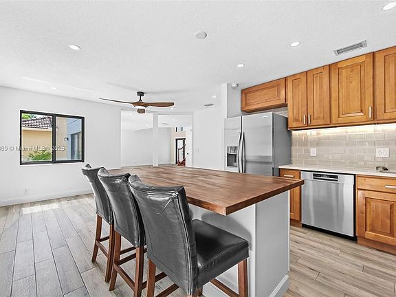 Courtesy of Compass Florida, LLC Remarkable 4 bedroom, 2.5 bathroom, 2-car garage family home in the highly desirable gated REFLECTIONS atROCK CREEK community in Cooper City. FULL IMPACT WINDOWS AND DOORS (2021), ROOF (2021), AC (2018),WATER HEATER (2021). First floor updated tile & Brazilian hardwood floors upstairs. Features include: hardwoodkitchen cabinets and quartz countertops, brand new dry bar, updated primary bathroom w/ bidet, entirely pavedpatio, freshly painted exterior, fenced backyard, well water for irrigation/sprinklers, Nest smart thermostat andgarage floodlights. A Schools, pet friendly community, 2.75 mile jog/walk path, parks, lakes, sports courts,tot playgrounds, tree-lined streets, community pool. Access to lap pool and tennis center.