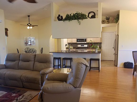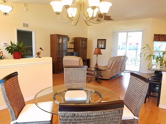 Wonderful 3/2/2 split floor plan with great room, cathedral ceiling, plant shelves, and dining area. The breakfast nook is off the kitchen area. The kitchen has granite countertops, stainless steel appliances, wood cabinets, and pantry. Spacious master suite with sliders to lanai. Large screened lanai with Jacuzzi! The master bathroom has a garden tub, separate shower, and walk-in closet. 2013 kitchen and bathrooms upgraded with granite countertops, undermount sinks and facets, 18''x18'' porcelain tiles in the wet areas with Pergo flooring throughout the rest of the home. Separate laundry room with front loading washer and dryer. 2014 Carrier AC, shed with electricity and 61'' doors, sprinkler system and 32'' LCD TV's with wall mounts in master and guest bedroom. This home has it all!