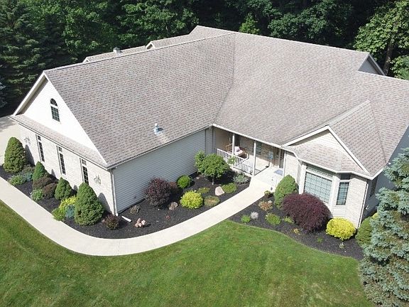This spectacular Ranch offers nearly 2700 sq ft of living space. This home is nestled on a private setting on a private road and offers 3 bdrms and 2.5 baths w/ split bedroom design. The property also features a extra covered parking or patio area which is located right next to the stylish outbuilding which offers endless opportunities. The large Family Room (28x17) offers a great space for entertaining and features a brick fireplace and wet bar. The spacious Owners Suite features and bench bay window, walk-in closet and glamour bath with jetted tub to relax in. The split bedroom design features the other 2 bedrooms on the other side of the house where the 2nd bath is also located. Oversized Sunroom (16x15) offers a fantastic escape from the rest of the house with glass French doors for privacy. It can also be used as office space or however you desire. Laundry room offers fantastic size (12x10) and great space. The Eat-in Kitchen offers all appliances with beautiful designer cabinets (great for storage) and slider to the covered deck which over looks the private backyard. The backyard offers absolutely gorgeous fall and winter views of the stream below. If your looking for privacy this is it! This home offers one of, if not, the largest 3 Car heated garages you will find with access to the basement. The basement has extra high ceilings and offers a 1/2 bath. Beautiful wood floors through Kitchen, Foyer and Halls. This home has been extremely well maintained and shows pride of ownership inside and outside. So many special features!!! Only 1 fortunate buyer will be lucky enough to land this home!