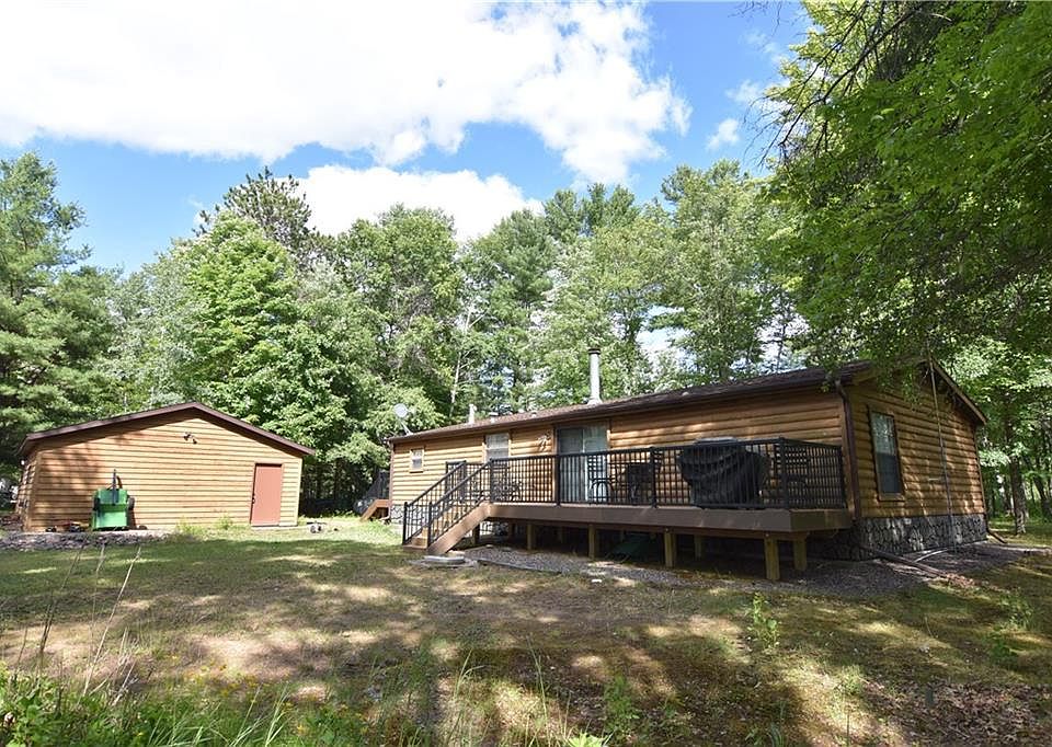 This cabin or year-round home is located on beautiful Round Lake in the heart of the Blue Diamond Vacation Area. The level, low bank lot makes lake access a breeze for all ages. Round Lake is a very popular swimming and fishing lake, with nice water quality and an abundance of Bass, Panfish, Northern, Walleye and Musky. The lake has relatively low development and a gorgeous, scenic shoreline. The home features composite decking with metal railings on the lakeside deck and all entrances. The clean, well cared for property is located at the end of a blacktopped private drive. Main suite has large bathroom with shower & garden tub, newer laminate flooring in entire home, kitchen with tons of cabinet space, and lovely woodburning fireplace. Relax on the deck and watch the kids fish off the dock, take the boat out to swim, ski, or fish and end your day by the lakeside firepit. Located just 45 min North of EC and 2 hrs East of MSP.