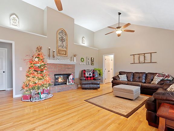 Charming farm home on a very private setting with 5 Acres. Large living room vaulted ceiling, double sided fireplace, oak hardwood floors, huge eat in kitchen with granite, Island, Pantry, split bedrooms, massive garage. 16x20 Screened Porch with uncovered grilling deck, partial fenced back yard.