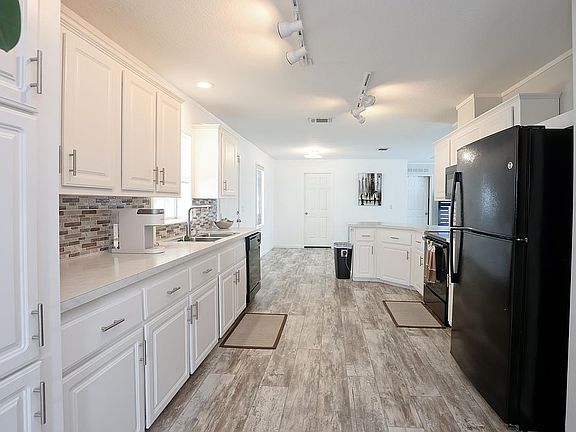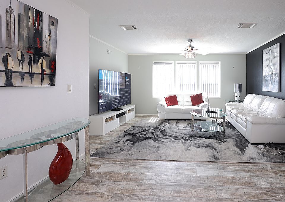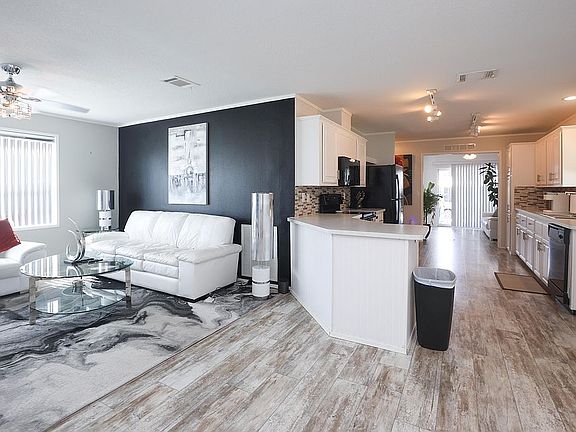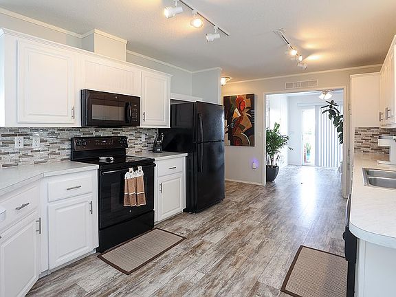 **HOME IS IN LAND LEASE COMMUNITY. NO REALTORS PLEASE** ------------------------------------------------------------------------------------------------------- 'Grayshire Grove', with its charming front porch and beautifully landscaped yard, is a move-in ready 4-bedroom, 2-bath home bursting with curb appeal. Located on a prime corner lot within the desirable neighborhood of Rexmere Village, this property sits across from scenic lakefront homes, providing peek-a-boo views of the lake between the houses across the street. The inviting foyer leads to an open-plan living, dining, and kitchen area that is perfect for both relaxation and entertaining. The spacious living room features beach-like plank flooring, contributing to a relaxed ambiance, while large windows invite natural light to fill the space. Beautiful tape and texture walls, along with architectural details, add a touch of elegance to the room. The dining area seamlessly connects to the kitchen, which boasts ample storage with white cabinetry and a stylish modern glass backsplash. The kitchen is equipped with all essential appliances, including a smooth-top stove/oven, a dishwasher, and a built-in microwave. A semi-open counter separates the kitchen from the living area, offering versatility for casual meals or entertaining guests. The home features freshly painted interiors and bold yet tasteful accent walls that enhance its character. Each bedroom provides ample space and natural light, creating inviting retreats for relaxation. The spacious master bedroom is designed for comfort, providing a tranquil atmosphere that is perfect for unwinding after a long day. The stylish master bathroom showcases modern "His" and "Her" sinks and Corian countertops, offering both functionality and aesthetic appeal. Throughout the home, ceiling fans ensure comfort in every room, while attractive light fixtures create a warm atmosphere. This property combines a modern living experience with a fantastic location, perfect for enjoying the beautiful surroundings and comfortable lifestyle. Finally, like all homes in this lovely lakeside community, you will enjoy central air and heat, off-street covered parking, your own outdoor storage shed, professional landscaping and sprinkler system, and access to the community's extensive recreational amenities including enormous heated pool complex, new fitness center overlooking the pool and lake, tennis, basketball, clubhouse, sauna, relaxation room, lake recreation and more. Don t miss the opportunity to make this stunning home yours! To schedule a private tour, reach out to Dee at (954) 858-5770. Be sure to ask for "Grayshire Grove", #1/4-PL and take the first step toward your new home today! HOME IS IN LAND LEASE COMMUNITY. NO REALTORS PLEASE.