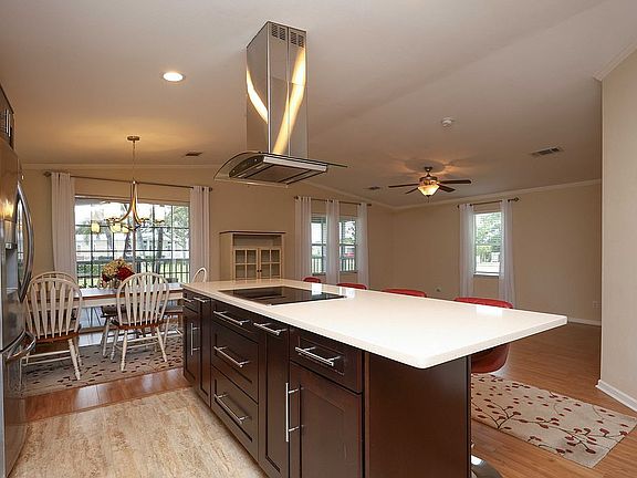 **HOME IS IN LAND LEASE COMMUNITY. NO REALTORS PLEASE.** -------------------------------------------------------------------------------------------------------- ‘Terra Verde’ is a spacious and beautifully renovated two-bedroom plus den, two-bath home on a desirable corner lot, surrounded by lush tropical landscaping that enhances its curb appeal. From the manicured lawn and tall palm trees to the stamped concrete driveway and charming rocking chair front porch—fully screened and expansive—this home makes a stunning first impression. The oversized covered carport provides room for two vehicles plus guest parking, a rare and valuable feature in the community. Inside, you’ll find gorgeous honey-toned hardwood laminate flooring throughout, lending warmth and sophistication to the open-concept living, dining, and kitchen spaces. The living room is bright and airy, with mini-blind treated windows and a chandelier fan that adds a touch of classic elegance. The completely remodeled chef’s kitchen is the centerpiece of the home. It features rich custom cabinetry, stainless steel appliances, a double wall oven (one microwave, one conventional), and a center island with a smooth top cooktop and a sleek Euro-style hood. The island also offers an overhang for bar-style seating, perfect for casual meals or entertaining. The dining area, like the rest of the home, is flooded with natural light and has easy access to the porch, a serene spot for morning coffee or afternoon relaxation. The master bedroom is generously sized and peaceful with two windows, his and hers closets, matching honey colored hardwood laminate floors, and an elegant chandelier fan. The en suite bathroom includes dual vanities with excellent counter space, under-sink storage, and a spacious step in corner shower. A separate laundry room with full-sized washer and dryer offers convenience and functionality. Finally, like all homes in this desirable lakeside community, you’ll enjoy central air and heat, your own outdoor storage shed, off-street covered parking, and access to the community’s extensive recreational amenities—including a brand-new fitness facility, tennis and basketball courts, clubhouse, sauna, relaxation room, heated oversized pool complex, lake recreation, and more. To schedule a tour of this special home, contact Nidia at (954) 417-0343. **HOME IS IN LAND LEASE COMMUNITY. NO REALTORS PLEASE.**