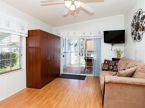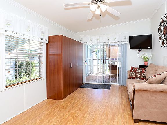 ***FULLY FURNISHED PRICE!*** ***NO BROKERS/NO REALTORS PLEASE*** ....................................................................................................... ‘Strawberry Colada’ is charming two-bedroom, two-bath cottage with a spacious den that can double as a third bedroom and comes complete with a convenient Murphy bed already installed. The beautiful home paints a lovely picture from the curb, with its lush landscaping, including mature trees, and a charming screened-in front porch. The wide driveway at the side, which extends to the covered carport, has ample space and can easily accommodate two cars plus the occasional visitor. (The community allows two cars per household.) The interiors follow an integrated concept in the social spaces, with the living, dining, and kitchen sharing space. The entire area has hardwood laminate flooring, which adds a warm vibe, accentuated by sections of bright red accented walls. The living area has ample natural light invited into the room through two wide mini-blind-treated windows. A chandelier fan helps regulate the airflow in the space. The dining area sits next to the living room and has two mini-blind treated windows that keep the area bright. An elegant chandelier hangs over the space reserved for the dining table, while an open counter, with a pass-through, separates the dining room from the kitchen. The kitchen has white cabinetry, providing ample storage, and matching essential appliances, including a smooth top range. A laundry area with washer/dryer (included in the price) is tucked away in the far end of the kitchen. The bedrooms in ‘Strawberry Colada’ have carpeted flooring, adding warmth to the ambience. Both the bedrooms have chandelier fans that help regulate the airflow. The primary suite has a spacious en suite bath with built-in countertop ‘his & hers’ sinks with under-counter storage. The highlight of the home is the expansive screened-in front porch that presents the ideal spot to sip a cool drink and enjoy the lush greenery in the surroundings. The oversized, insulated storage shed is a bonus. The house comes fully furnished, adding to its desirability. Finally, like all homes in this lovely lakeside community, you will enjoy central air and heat, off-street covered parking, your own outdoor storage shed, professional landscaping and sprinkler system, and access to the community's extensive recreational amenities including enormous heated pool complex, new fitness center overlooking the pool and lake, tennis, basketball, clubhouse, sauna, relaxation room, lake recreation and more. To schedule a tour of this home, contact Ralph at (954) 417-8936. NO BROKERS/NO REALTORS PLEASE.