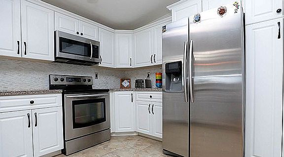 TWIN PALMS gets its name from the lovely mature palms that stand in front of the home, giving it a distinctive look when viewed from the curb. The three-bedroom, two-bath home looks serene with its soothing white exterior fringed by lush green landscaping. The half-porch in front enhances its curb appeal as well as owner enjoyment. From the front porch, the entrance door opens into an elongated integrated space containing the living room, dining room and kitchen. The living and dining rooms have hardwood laminate flooring that lends a warm vibe to the interiors. The kitchen has maintenance-free vinyl tiles. Windows along the walls of the living room and dining area invite ample natural light into the home, while mini-blinds help to protect the privacy indoors. The living space has a chandelier fan, whereas a lovely modern chandelier hangs over the area reserved for the dining table, providing illumination after dark. An open countertop with an overhang separates the dining area from the kitchen. The counter has three hanging lampshades suspended over it, making it perfect as a bar counter with stools. The U-shaped layout of the kitchen has ample workspace with granite counters on three sides, with all-white cabinets providing ample storage. It comes with a range of new stainless steel appliances, including a smooth top range and a side-by-side refrigerator with door-thru ice. A chandelier fan helps to regulate the airflow in the kitchen. The master bedroom in ‘Palm View’ has hardwood laminate flooring that lends it a cosy vibe. Two mini-blind treated windows invite natural light, giving the room a bright and airy feel. The en suite bath is luxurious with separate ‘his & hers’ countertop basins and a shower enclosure with sliding glass doors. A door connects the bath to a walk-in closet. Finally, like all homes in this lovely lakeside community, you will enjoy central air and heat, off-street covered parking, your own outdoor storage shed, professional landscaping and sprinkler system, and access to the community's extensive recreational amenities including enormous heated pool complex, new fitness center overlooking the pool and lake, tennis, basketball, clubhouse, sauna, relaxation room, lake recreation and more. To schedule a tour of this lovely home, contact Nidia at (954) 417-0343 . Ask for "Twin Palms", #28/4-PL.