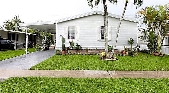 **HOME IS IN LAND LEASE COMMUNITY. NO REALTORS PLEASE.** ---------------------------------------------------------------------------------------------------- Set in an idyllic location across from a community park on the lake, ‘Peaceful Perch’ is a desirable four-bedroom, two-bath house with lovely views. Add to this a fenceable back yard and many recent upgrades including a new roof, newer air conditioner (2 years) newer water heater (2 years) and washer/dryer, and the home is sure to sell out quickly. The house is the picture of cozy comfort from the curb surrounded by lush landscaping including a perfectly manicured lawn and mature palms. The driveway leads to the carport, the screened-in and tiled patio, and a convenient storage shed at the back. The house has an L-shaped open-plan layout in the common spaces. The living area has hardwood laminate flooring, whereas the dining area and kitchen have maintenance-free ceramic tiles. All the rooms have ample natural light invited through mini-blind treated windows. The chandelier fan in the living room helps regulate airflow. A pretty lampshade hangs over the space reserved for the table in the dining area. The all-white kitchen is modern with essential modern appliances including a side-by-side refrigerator with door-thru ice, a smooth top range and dishwasher. An island counter with a built-in sink and an overhang on two sides can double as a bar when entertaining or as a breakfast/snack counter for casual family meals. A small recess holds the laundry area, complete with a washer and dryer included in the price of the home. All three bedrooms in ‘Peaceful Perch’ have hardwood laminate flooring that add a sophisticated and cozy touch. The master bedroom has a spacious en-suite bath with a built-in countertop basin and a Roman tub with a window that invites natural light into the room. The second bath has a practical shower-tub combo unit and a built-in countertop basin with a storage cabinet underneath. Finally, like all homes in this lovely lakeside community, you will enjoy central air and heat, off-street covered parking, your own outdoor storage shed, professional landscaping and sprinkler system, and access to the community's extensive recreational amenities including enormous heated pool complex, new fitness center overlooking the pool and lake, tennis, basketball, clubhouse, sauna, relaxation room, lake recreation and more. To schedule a tour of this lovely home, contact Ralph at (954) 417-8936. Ask for "Peaceful Perch", #72/1-PL. **HOME IS IN LAND LEASE COMMUNITY. NO REALTORS PLEASE.**