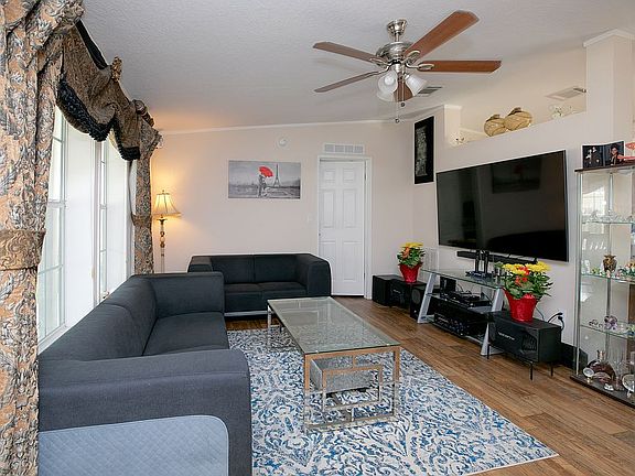 his is a gorgeous spacious like-new home with many premium features. ‘Summer Solstice’ is the perfect home for enjoying the tropical gorgeousness of South Florida. The four-bedroom, two-bath house comes with an oversized storage shed – an added benefit. Additionally, knock-down plaster walls in the living area, dining room, kitchen and master bedroom offer flexibility in the layout for future renovations or upgrades. When seen from the curb, the house looks pretty with its elegant earthy exterior walls contrasted by white trim on the windows and siding. The full front porch, with beautiful wooden planks, adds to the curb appeal of this gorgeous house. The entire house has lovely hardwood laminate flooring that adds a sleek and cozy touch to the interiors. The open plan layout accommodates the living room, dining area and the kitchen in the same space, but the kitchen is hidden from direct views from the living area by a partition wall – a convenient feature when entertaining guests. Two large mini-blind treated windows invite ample natural light into the living area, while a chandelier-fan helps to regulate the air flow in the room. The dining area too has two wide windows that beautifully frame the views of the lush landscape in the surrounding community. The kitchen has lovely wood-toned cabinetry that is beautifully contrasted by smart black essential appliances, including a dishwasher, refrigerator, microwave and stove/oven. The kitchen has an open counter with an overhang facing the dining area, allowing it to double up as a bar counter with stools. The master bedroom is spacious and airy with ample natural light invited in through two mini-blind treated windows. The attached bath comes with luxurious fixtures, including ‘his & hers’ countertop sinks, a separate shower enclosure with sliding glass doors and a Roman tub that is ideal for soaking in a bubble bath. Finally, like all homes in this lovely lakeside community, you will enjoy central air and heat, off-street covered parking, your own outdoor storage shed, professional landscaping and sprinkler system, and access to the community's extensive recreational amenities including enormous heated pool complex, new fitness center overlooking the pool and lake, tennis, basketball, clubhouse, sauna, relaxation room, lake recreation and more. To schedule a tour call (954) 376-4141.