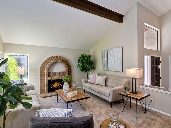 Welcome to this beautifully updated 4 bedroom, 3 bath Westwood home! Situated on a corner lot, this two story Spanish style home is surrounded by a low maintenance yard of drought tolerant plants, rock, and brick/stucco work. Walking through the entry your eyes are drawn to the vaulted ceilings, warm neutral colors and wood laminate flooring. Step up into the open living room with new carpet, beamed ceiling and a striking brick fireplace. See Supplement . . . .