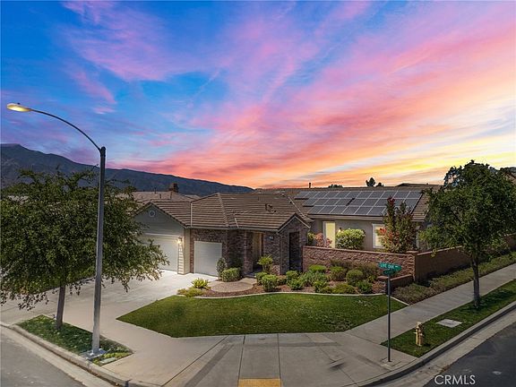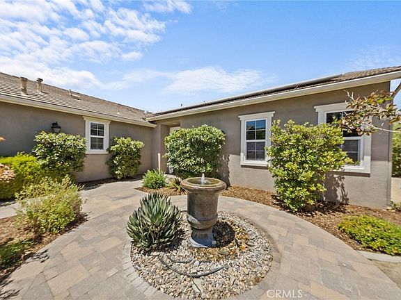STUNNING SINGLE-STORY HOME ON EXPANSIVE 13,068 SQFT CORNER LOT WITH PAID OFF SOLAR! Located in the highly desirable PRIVATE GATED COMMUNITY of Sycamore Hills, this stunning home offers an open floor plan w/ 10-foot ceilings & a private gated courtyard upon entry featuring a serene water fountain. This home has 3 bedrooms, each with their own bathrooms, plus a half bath, totaling of 3.5 bathrooms. Step into the great room which combines the living, dining & kitchen into one great open space. The gourmet kitchen includes granite counters, oversized island w/ seating, GE profile stainless steel appliances including a double wall oven & a gas cooktop. This kitchen seamlessly flows into the dining room & great room that has a custom built-in media center w/ surround sound speakers & a modern electric built-in fireplace. Each bedroom is generously sized w/ walk in closets. The spacious primary en-suite offers direct backyard access, a large walk-in closet with custom built in organizers & a bathroom, w/ stone countertops, dual sinks, soaking tub & a walk-in shower. There is a spacious laundry room w/ built in cabinets for storage & a sink for added convenience. The backyard is an entertainer’s dream, featuring a custom outdoor kitchen/BBQ area & bar w/ concrete counters & includes a Bull BBQ grill w/ side burners, Bull Charcoal Smoker, wood-fire pizza oven, a beverage center, an ice maker & a sink - under a gazebo with a fan. The beautifully landscaped yard includes mature olive trees, fruit trees, outdoor lighting, serene fountains & w/ breathtaking mountain views. A covered California room w/ a ceiling fan & outdoor built in speakers enhances the outdoor living space. Additionally, this turnkey home features something extremely unique…a built-in backup generator. Providing uninterrupted power during outages so you can maintain a comfortable living environment. Other features are it has a 3-car garage, whole house fan, plantation shutters, retractable screen doors, rain gutters, newer AC unit & more! The HOA’s includes the private gates, pools, fitness center, clubhouse, multiple walking trails, & a variety of parks. Deleo Regional Sports Park is centered in Sycamore Creek offering NEW PICKLEBALL COURTS, NEW BMX BIKE PARK, Skate Park, Dog park, Soccer & Baseball Fields, Tennis & Basketball Courts, BBQ’s & Picnic Areas! Sycamore Creek residents enjoy close proximity to shopping, dining, golf courses, hiking trails, nearby 15 freeway access & great schools.
