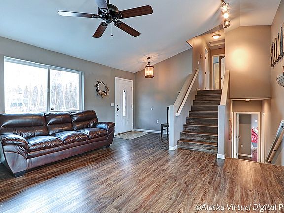 Beautiful and welcoming, this well maintained home is ready for you! In floor heat, stainless steel appliances, granite countertops, and 5* rating energy efficiency make this one stand out. Fully fenced and level backyard allow you to get outside and enjoy the Alaska summer around the fire pit. Family room downstairs. Raise your horse or chickens right in your backyard! BTV all.