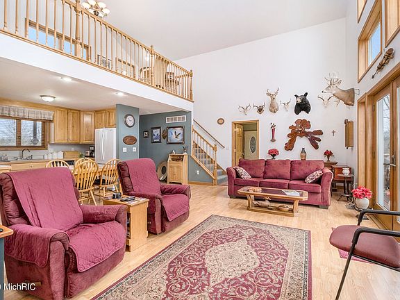 42+ ACRE retreat with exceptional opportunity for hunting! This is a 1-owner custom built home in a private setting with many amenities. The move-in ready home is spacious with a convenient footprint. The main floor has a Amish built custom hickory kitchen, large open living room/dining room area with spectacular views of the acreage through a wall of windows in the back of the house. The master bedroom is set off to the side of the living room and includes an en suite. Additionally, the master suite has a private entrance to the hot tub room. We also have a 2nd full bath and bathroom on the other side of the living room. The den could be used as a 3rd main floor bedroom. Up a flight of steps is a loft style bedroom with a 5' x 22' private balcony. The main floor also includes