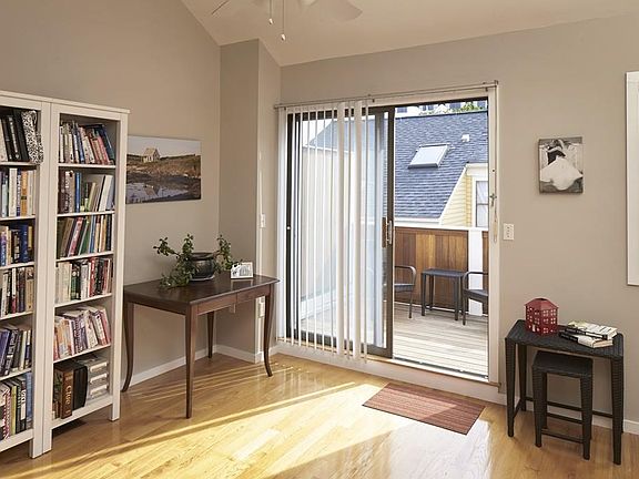 Inviting single family townhouse set back from the street near Inman Square. Appealing open floor plan on the main living level with 10'-0" ceiling. Light-filled living room with wall of windows overlooking secluded outdoor space. Spacious dining room opens onto L-shaped kitchen with stainless steel appliances and granite counters. On the second floor you will find two good-size bedrooms front and back, with a larger full bathroom between them. On the top floor, discover a delightful bonus room with skylight that opens onto your own private roof deck. Additional highlights of this home include a wood-burning fireplace; in-unit laundry; central ac; garage parking for two cars. Walk Score® 91 - "Walker's Paradise." Offering easy access to Harvard and MIT, as well as the many restaurants, shops and services in Inman Square. Rare offering.