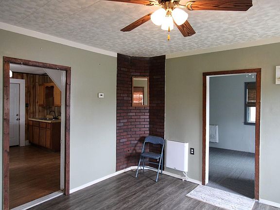 This property comes with 2 lots, up to 3 bedrooms with one being on 2nd level and needing carpet replaced & some TLC, a 40' X 14' storage building that has a wood floor and Solar lights, ramp with a standard garage door to exit and a lot that is extra deep. The 2nd bedroom is located just off the kitchen has direct access to the bathroom and a wardrobe that will be included with purchase. Kitchen appliances included to include Washer & Dryer. Home is said to have Pex plumbing. It is my understanding that the previous owner rarely used Gas furnace as he preferred the Electric radiant heaters in each room. Sold AS IS.