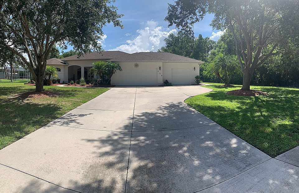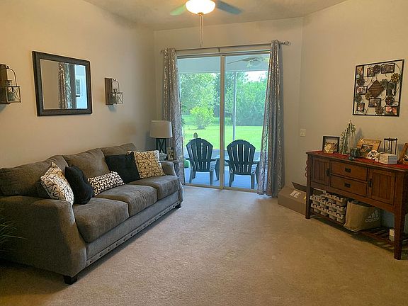 PRIVACY + LAND! This Beautiful home in the sought after MILL CREEK community is on almost an acre, corner property across from a lake. New paint on the exterior in 2021 along with a new roof, HVAC, and hot water heater. All new GE appliances in the kitchen were installed in May 2022. Enter through the Double Doors onto the tiled hallway flowing into the Living Room looking out to the Spacious Backyard! The Kitchen is open to the Great Room and offers traditional wood cabinetry with under mounted lighting and large pantry. The Master Suite has access out to the Lanai and a spacious sitting area, with two walk-in closets. The Master Bath has a Jacuzzi Tub, Roman tiled Shower and double vanity. The other two Bedrooms have double closet space and share the Hall Bathroom. There is a ROOM built in the garage that can function as an Office or Gym space. Enjoy sitting in the screened in Lanai while looking out at the Vast Backyard space with plenty of room for a pool. This community offers a playground, basketball court and is conveniently located near dining, shops and highways. In a Top School District- perfect place to raise your family. Can park your RV or Boat on property with Low HOA & No CDD.