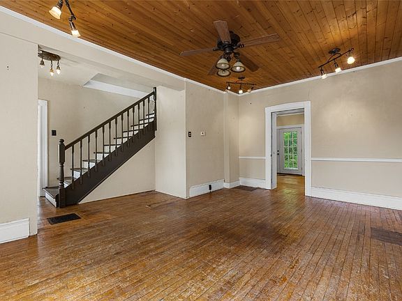 This is an opportunity to own a all brick home from 1870 that could be restored into a lovely home again. This was a unique antique store that was meticulous with its upkeep, and maintained and added to its beauty and charm. This 2 story boasts double original entry doors with working doorbell. To your right is a large living room with hardwood floors and tall ceiling. Ceilings were updated with wood! You can go into the kitchen with french doors from there. The kitchen was removed for the shop, but easily could be restored. There is a formal dining room, main floor full bath with clawfoot tub, and another living room on the first level. The second level has newer wide stairs that has a corner 1/2 bath and two bedrooms that go into eachother and another large bedroom. There is a door in the upstairs hallway for what was a widows walk at one time. The back yard is a wonderland with brick paths, and maintenance free deck. There is a charming storybook shed that would make a great playhouse, entertainment she shed, or so many things. Mature trees, alley access that could lead to a garage. Just steps from uptown. This home is on the historic register and its history is amazing. Call the listing agent for a private tour today!