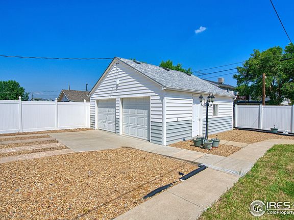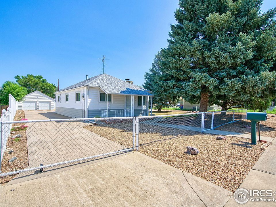 Own a piece of history with this home! Built in 1903 & owned by the same family since, the pride of ownership shines through from the moment you pull up. This well-loved & cared for 2 bedroom, 1 bath home offers the opportunity to make it your own for both home buyers & investors. Favorite features include the wood fireplace in the living room, charming pass through from the kitchen to the dining room & extra storage the basement has to offer. Outside the oversized double lot is nearly 1/3 acre, fully fenced & features a detached oversized 2 car garage/shop, mature trees, and clean landscaping. Front Range views from the covered front porch on clear days. Roof, Siding, Storm Doors & Windows have been replaced & updated over the last few years. Home comes with a First American Home Warranty that will transfer to the Buyer.