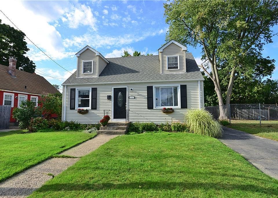 Welcome to Cranston!! This 3 bedroom, 2 1/2 bathroom adorable cape is move in ready. Kitchen has plenty of cabinet space with movable island, stainless steel appliances and corian counters open to the formal dining room. 1st floor also features a living room, bedroom and updated full bathroom. There are beautifully refinished hardwood floors on the first floor with freshly painted rooms. Second floor includes 2 spacious bedrooms and bathroom with shower. Lower level has 2 finished rooms, 1/2 bath and storage area. Private fenced in yard, with cement patio, and fire pit makes the backyard a great space to relax!