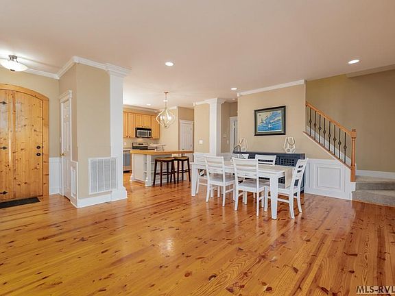 Picture yourself living in this beautifully upgraded & freshly remodeled home on private Songbird Creek. Enter through the welcoming foyer that leads you into the family rm, complete with a gas fireplace and lustrous wood floors. The kitchen is a chef's delight, featuring a central island, stainless appliances, and plentiful cabinet space. The home boasts 4 bedrooms, 4.5 bathrooms, 2 flex rooms & full basement, providing abundant room for family living. Fantastic bar in the basement for great fun! Unwind in the owner's private sanctuary with an en-suite bathroom equipped with a walk-in shower, dual vanities, & a luxurious soaking tub. Outside, enjoy two spacious decks, an extensive hardscape patio with a firepit. Boathouse has composite decking, a sundeck for extended space, & metal rails all designed for low maintenance: perfect spot to kayak or paddle board. Water 8' deep water at list