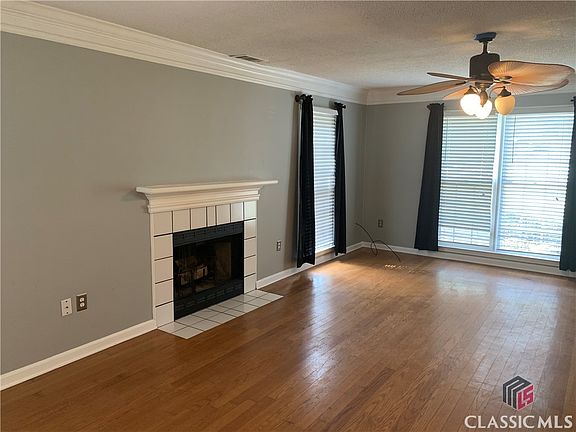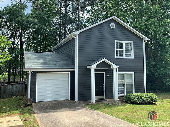 This cozy 2 bedroom 2.5 bath home is conveniently situated in east Athens in the Villas at Snapfinger where access to Lexington Rd shopping, downtown Athens, the UGA Campus and Watkinsville are only minutes away! The home is nestled on a quiet cul-de-sac and has a fenced back yard for extra privacy! As you walk in to the home you will find a large living room with real hardwood flooring and a wood burning fireplace. recently installed tile flooring adorns the adorable kitchen and dining area. From there you can access the patio and fenced backyard. Both bedrooms have their own private bathroom. The home also has a brand new garage door, new exterior hardi-plank style siding (2022), a new dishwasher and a new AC compressor all installed in 2022. **New carpet with memory foam padding has been installed on the stairs and 2nd floor.