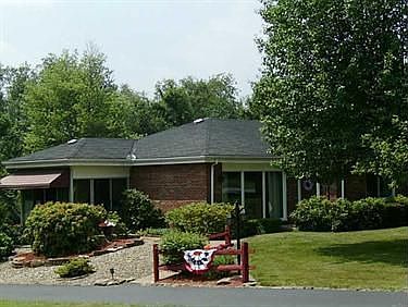 COMFORTABLE ONE STORY LIVING WITH SCENIC SPLENDOR! This delightful 3Bd. brick ranch has an emerald lawn, beautiful deep back lot with space galore for pool, backyard living and playground, well tended gardens, recently topped driveway, glass and screened patio overlooking lovely landscaped yard, wrap around fireplace in living room, newer berber carpeting, new windows, exterior lighting, crankable awnings, public water and public sewer.