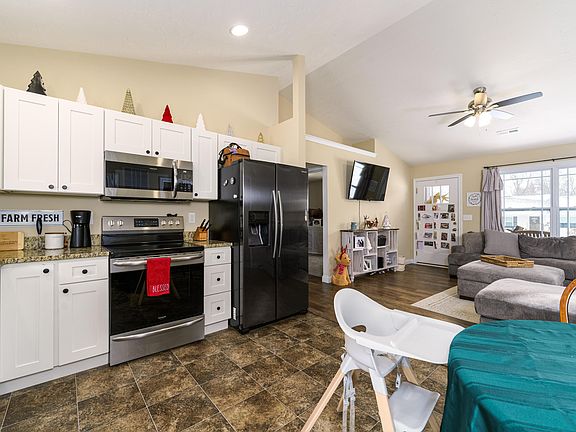 - Open Floorplan, Granite Counters, Eat-in Kitchen, Ceiling Fan(s), Recessed Lighting, Vaulted Ceiling(s)