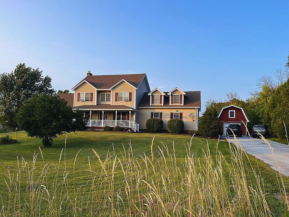 Come see this beautifully maintained 4 bedroom, 2.5 bath colonial style home located on a peaceful acre of land in Swanton VT, just minutes from I-89! As you enter down the paved driveway, you'll access a generously sized two-car insulated garage as well as a detached barn perfect for a workshop with additional storage above. Your covered front porch features amazing lake views prior to welcoming you inside the home! As you enter, you'll be greeted with impeccable maple flooring and an inviting open floor plan. The open floor plan creates a natural flow taking you from the dedicated dining area into the HUGE living room with an attractive pellet stove set on a slate hearth that provides a cozy ambiance on cold Vermont nights and saving a lot on heating costs. Your kitchen has a center island with plenty of cabinet space, stainless steel appliances including a 5 burner gas stove, dishwasher, and large fridge. Off the kitchen you can either access the mudroom, laundry room/half bath, or use the glass slider to spend time on a beautiful deck overlooking the very large backyard. Slide into the new 5-person hot tub to melt away stress. As we head upstairs, the second floor features 3 bedrooms, all generously sized, including your master bed with en suite bathroom, spacious closet, and the second full bath in the main hallway with a tub! Wrapping up the second level is a huge bed/bonus room, perfect for a playroom, office, storage, or exercise room. The large mostly finished basement provides lots of space for den, workout room, wet bar included. Located near key area employers such as Mylan, Northwestern Medical Center, DHS, USCIS/Immigration, and Ben & Jerrys. Schedule your showing today!