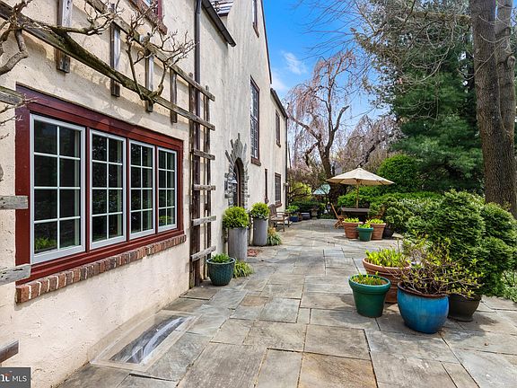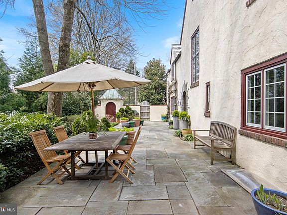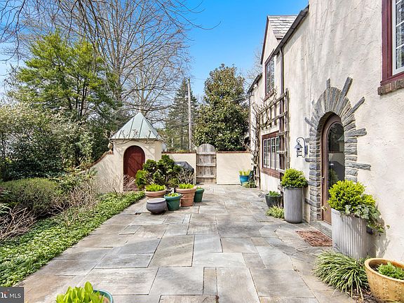 OPEN HOUSE SATURDAY APRIL 20th 2-5PM. Welcome to this charming Tudor in Downtown Wayne with an outdoors lover's dream! This pristine home showcases original craftsmanship while highlighting modern flair. Enter the European walled sanctuary through an engaging gate to be welcomed by the incredibly private, picturesque grounds including a large bluestone patio spanning the width of the home, providing ample space for outdoor dining, and access to a copper-roofed potting shed. As you continue through the enchanting pathway showcasing the professionally landscaped gardens and leading to the stunning in-ground pool all illuminated by a new in ground lighting system - you'll spend countless hours in this private oasis. Situated on a corner lot allows for two separate driveways - one complete with a two car detached garage- there is plenty of parking for all. The home greets you with the center foyer, where you are welcomed by original hardwood floors and crown molding that continue throughout much of the home. The ground floor consists of the formal living room (complete with access to the private screened porch), large dining room, gourmet kitchen, cozy den, and powder room. The gourmet granite kitchen showcases appliances fit for a cordon bleu chef - stainless steel Bertazzoni range and oven, Mielle microwave/convection oven with warming drawer and built in Mielle espresso/coffee maker. The eat-in breakfast nook comes with a fitted banquette which creates the perfect space to enjoy your morning coffee. The large dining room, with stunning garden views from two walls of windows, provides ample space to accommodate many dinner guests or host an intimate meal. The formal living room showcases the proud craftsmanship which is timeless, yet very difficult to replicate today. Such as the ceiling beams, fireplace, built in bookcases and French glass doors leading to the private bricked screened-in porch. The location of this sitting room allows for the second set of French doors to be closed for solitude or quiet from the rest of the home. The cozy den is the perfect place to relax and decompress. This would also make an excellent home office. The custom plantation shutters allow for the perfect light- whether for work or enjoying the TV. Heading up the staircase following the new custom stair runner, framed by the crafted banister you will find on the second floor - the main bedroom with ensuite bath, two additional substantial bedrooms and a hall full bath. The spacious main bedroom has a unique wall of closets with a hidden cedar closet behind, ceiling fan and gorgeous views from the many windows. The ensuite bathroom is state-of-the-art with a steam shower, double sink vanity and Toto washlet toilet. Continuing up the stairs to the third floor you will find the fourth bedroom and third full bathroom. This useful space can be used as a guest suite or an additional family room. There is also additional attic storage. The full basement of this residence also offers much more storage, laundry facilities and even a climate-controlled wine cellar! Walk to Wayne to enjoy the local shops and restaurants, as well as the convenience of the train station to access the City in minutes. In addition, proximity to many major highways, King of Prussia Mall and the local award winning Radnor Township Schools make this home unbeatable!