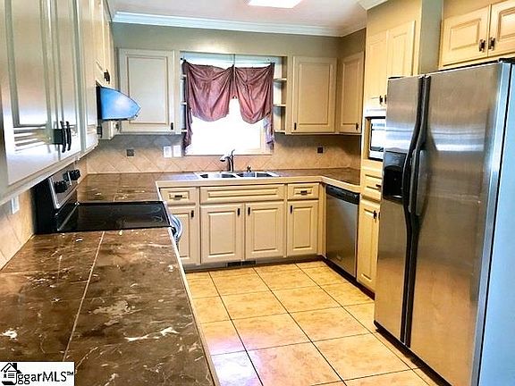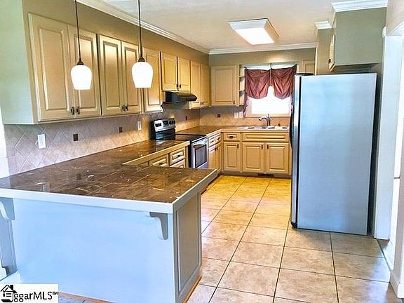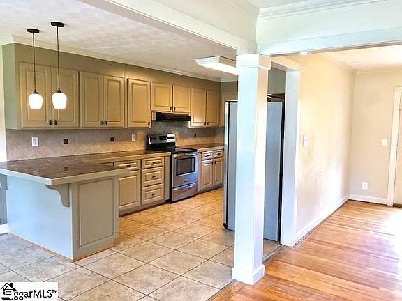 This turn-key ready home is just waiting for its new owner! Rocking chair front porch leads you into a warm and inviting den and dining area with gleaming hardwood floors, a brick fireplace to cozy up to for the chilly days and nights ahead. To the left you'll find a beautiful, updated kitchen, featuring a well layed out, spacious counter with an added counter to eat at or for the kids to do homework. Also many cabinets and drawers for storage. A breakfast area too for coffee & conversation, or whatever you prefer. This area leads you into the addition of a Master Bedroom Suite, featuring a tray ceiling with hidden lighting around the edges, a walk-in closet, nice size tiled shower with nooks for shower, soap, etc. Away from the master bedroom are two separate bedrooms, with a half bath in one. The hall bathroom has also been beautifully updated! French doors open to the deck for relaxing or entertaining, and a fully fenced backyard! The 20'x25' building with a 10' door, is perfect for a workshop, storage or whatever you choose! You'll also find that you are only about 10 minutes to all the amenities of Downtown Greenville! Don't let this home slip away.
